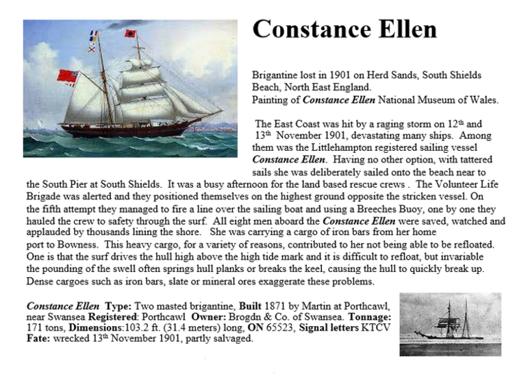 This is a typical half page from Shipwrecks for Walkers book, Each beach wreck is described with a story , an illustration, details of the vessel and how to find the wrecksite on the beach.